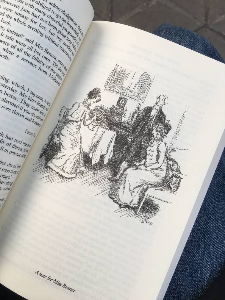 آقا و خانم بِنِت (Bennet) پنج دختر دارند. جِین و الیزابت بزرگتر از سه خواهر دیگر هستند و البته باوقارتر و سنگینتر. دو خواهر کوچکتر بسیار سبکسر هستند و مایهی خجالت دو خواهر بزرگشان. دختر وسط (مری) تنها دختر نازیبای خانواده است بنابراین به یادگیری ساز زدن و کمالات پرداخته. چندی است که در همسایگیشان در قصری به نام «نِدِرفیلد» مردی سرشناس و ثروتمند به اسم «چارلز بینگلی» ساکن شده که بسیار بامحبت و خوشچهره است. در یک مهمانی عمومی روستا، خانوادهٔ بِنِت نیز حضور دارند. آقای دارسی، دوستِ صمیمی چارلز بینگلی هم در آن جشن شرکت کرده است.